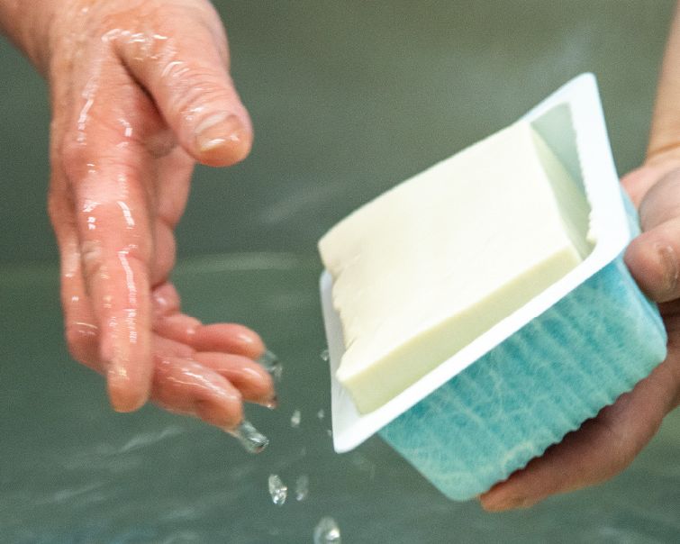 その時々で最も良い出来の国産大豆をふんだんに使い、厳選されたにがりで大豆本来の味を最大限に引き出す。